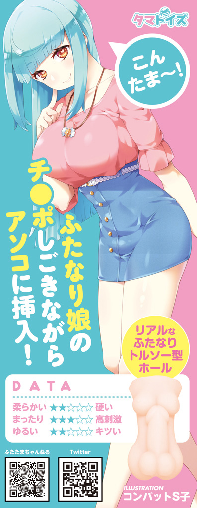 このオナホはタマトイズが本気を見せるコラボオナホ。コラボ相手の弐珠司(ふたたまつかさ)ちゃんは、世界にただ一人の触手好きふたなりVtuberにしてバーチャルふたなりデ〇〇ル嬢なのであります。Vtuberとしてはゲーム実況の他、ASMR配信で耳舐めとかしてくれる、サービス満点のえっちなふたなりちゃん。それが弐珠司ちゃんなのだ。合言葉は「こんたま〜!」ですよ♥