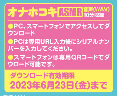 ▲パッケージに書かれた注意書きによるとASMR音声は2023年6月23日までDL可能との事なので安心だ