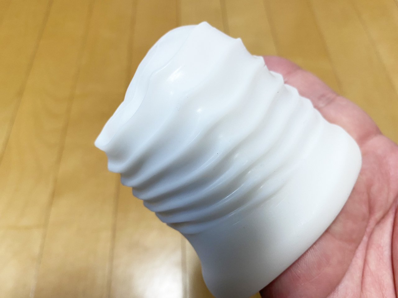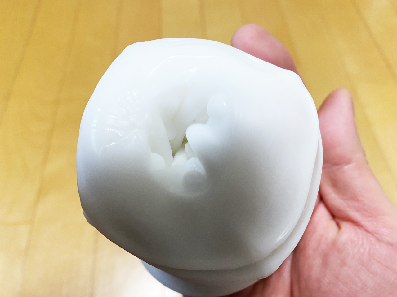 ようやく慣れてきたら、ぐいぐいと引っ張ってみたのだが…やっぱり気持ちよすぎる。上下に出し入れするオナホと違って、上に引っ張って密着しては緩ませるを繰り返すことで刺激を与えて射精に導くのが常道なのだろうが、いきなりは上級者すぎる。しかし気持ちいいのは間違いないので、二度三度と使っているうちにチ◯ポも慣れて、本当の気持ちよさを感じることができるんじゃなかろうか。