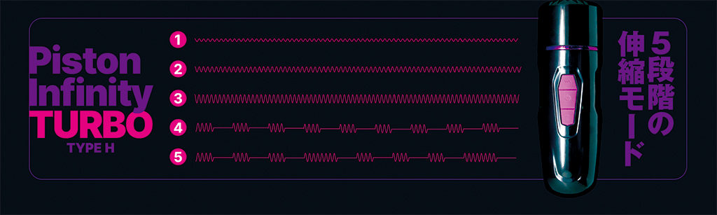 実際に試してみると、最初からフルパワーにすると刺激が強すぎてちょっと痛い。予想以上に強力なので、最初は弱めになところにしておいて、次第にパワーを上げていったほうがいいだろう。フィニッシュ用のターボモードも搭載されているが、ある程度慣れてからの方がよさそうだ。ちなみにピストンのリズム=伸縮モードも5段階で変えられるようになっているので、刺激が単調で飽きるという心配はないぞ。また刺激のパワーが強いので、ローションも別途大量に用意して、ヒタヒタにして潤滑度を高めるのがオススメだ。