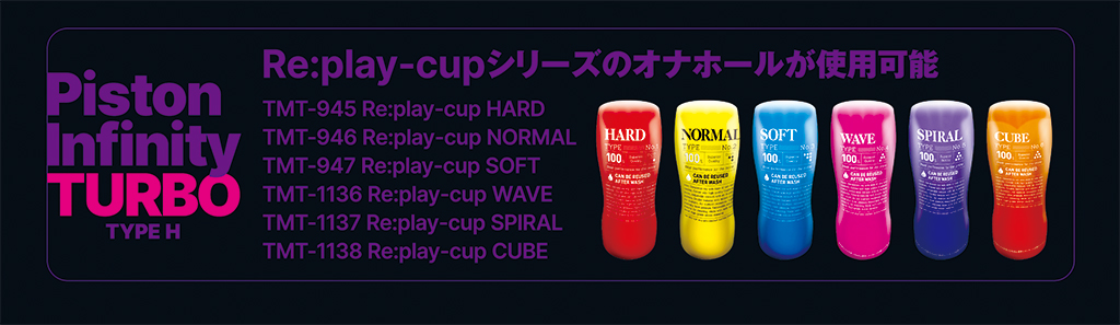なお本体と取り付けるオナホ部分はカップになっていて、カップからオナホを外す事が出来る。これにより何度も洗って使えるという、神仕様なのだ。またカップは、別売りの「Re:Play-Cup」シリーズのオナホールに対応している。最初に入っていたオナホと入れ替えて、その日の気分に合わせて異なる快感を楽しむ事も可能なのだ。