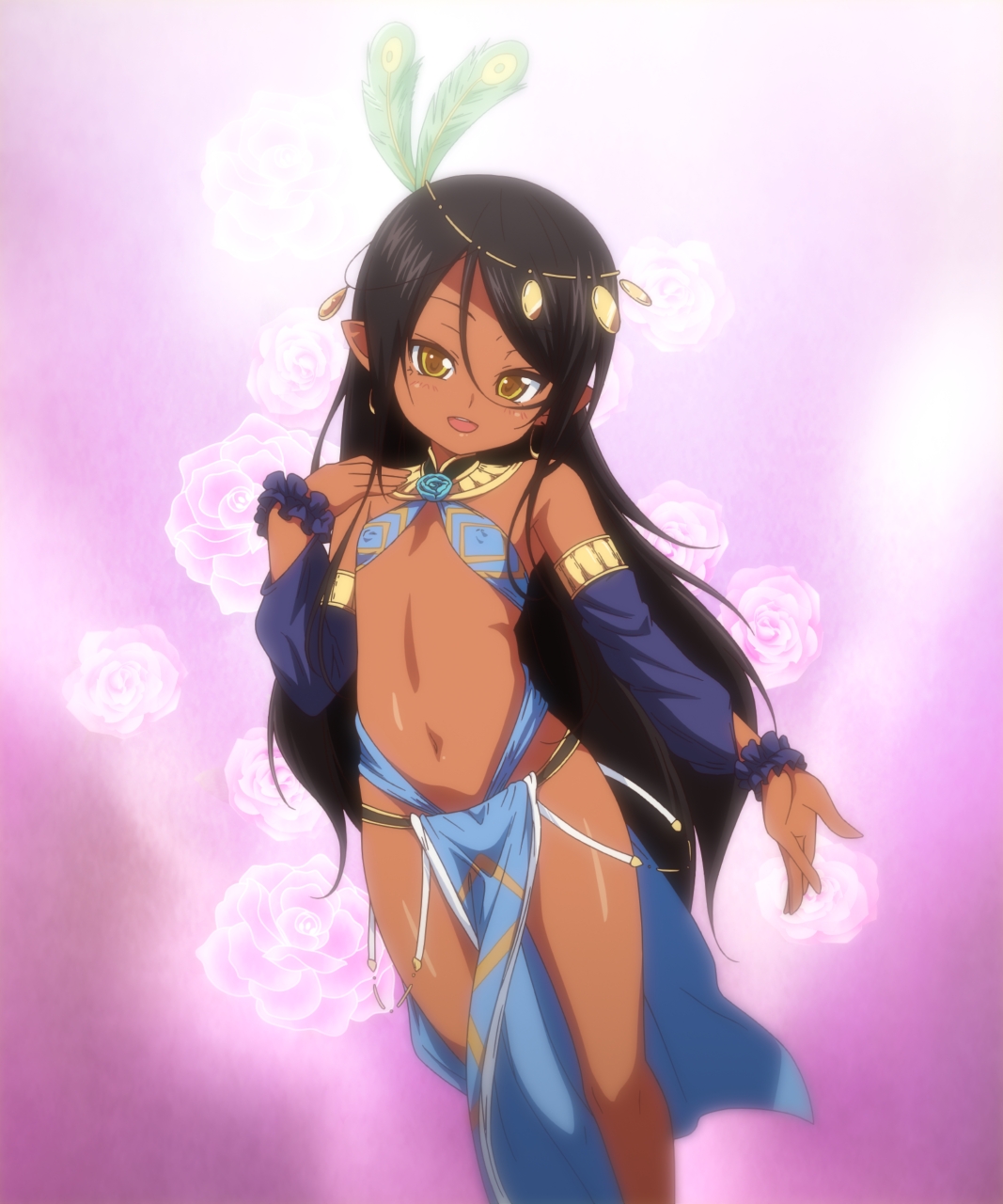 ▲黒髪ロングの褐色ロリエルフ・ロゼッタちゃん。エルフィナちゃんに引けを取らないつるぺた体型に新たなファンが続出の予感!!