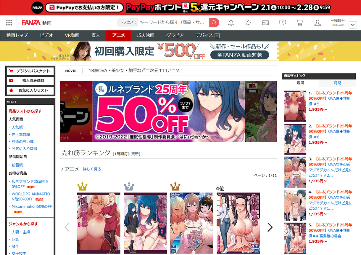 FANZAで「年末年始動画50%OFFキャンペーン」が開催中!! 数日おきに入れ替わるのでこまめにチェックを☆ 11月〜12月の最新Hアニメ月間売上ランキング