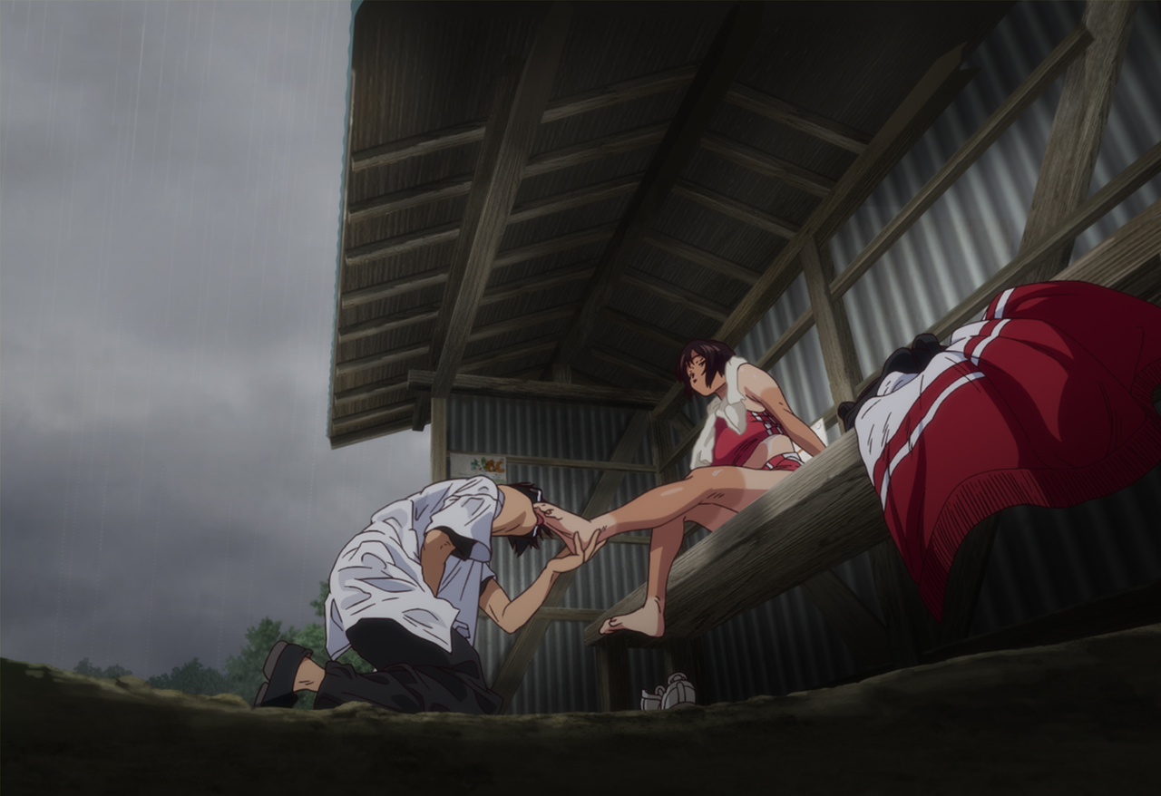 人里離れたバス停で、たまたま雨宿りすることになった陸上部女子とオタク男子。互いに異常な性癖と思春期特有の欲望を認め合い、雨と汗でビショビショになった身体を重ねていく…。