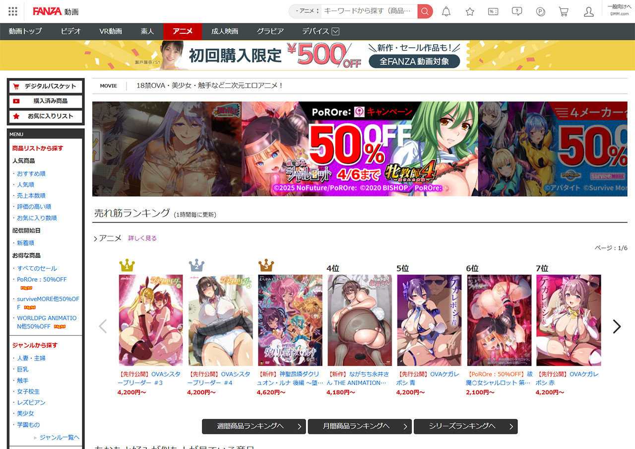 FANZA動画で「年末年始動画50%OFFキャンペーン」開催中!! 対象作品は数日おきに変わるのでこまめにチェック♪ 11月~12月の最新Hアニメ月間売上ランキング
