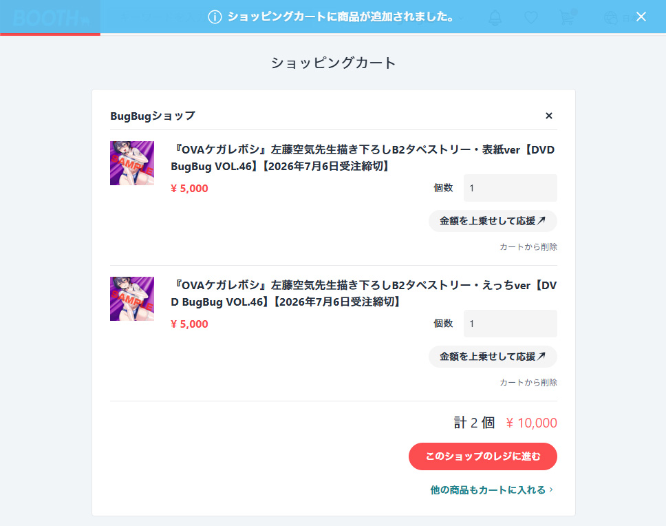 BOOTHを使うのが初めてという人も多いと思うので、ここからは【BugBugショップ】 で実際にB2タペストリーを購入する方法を詳しく紹介しよう。