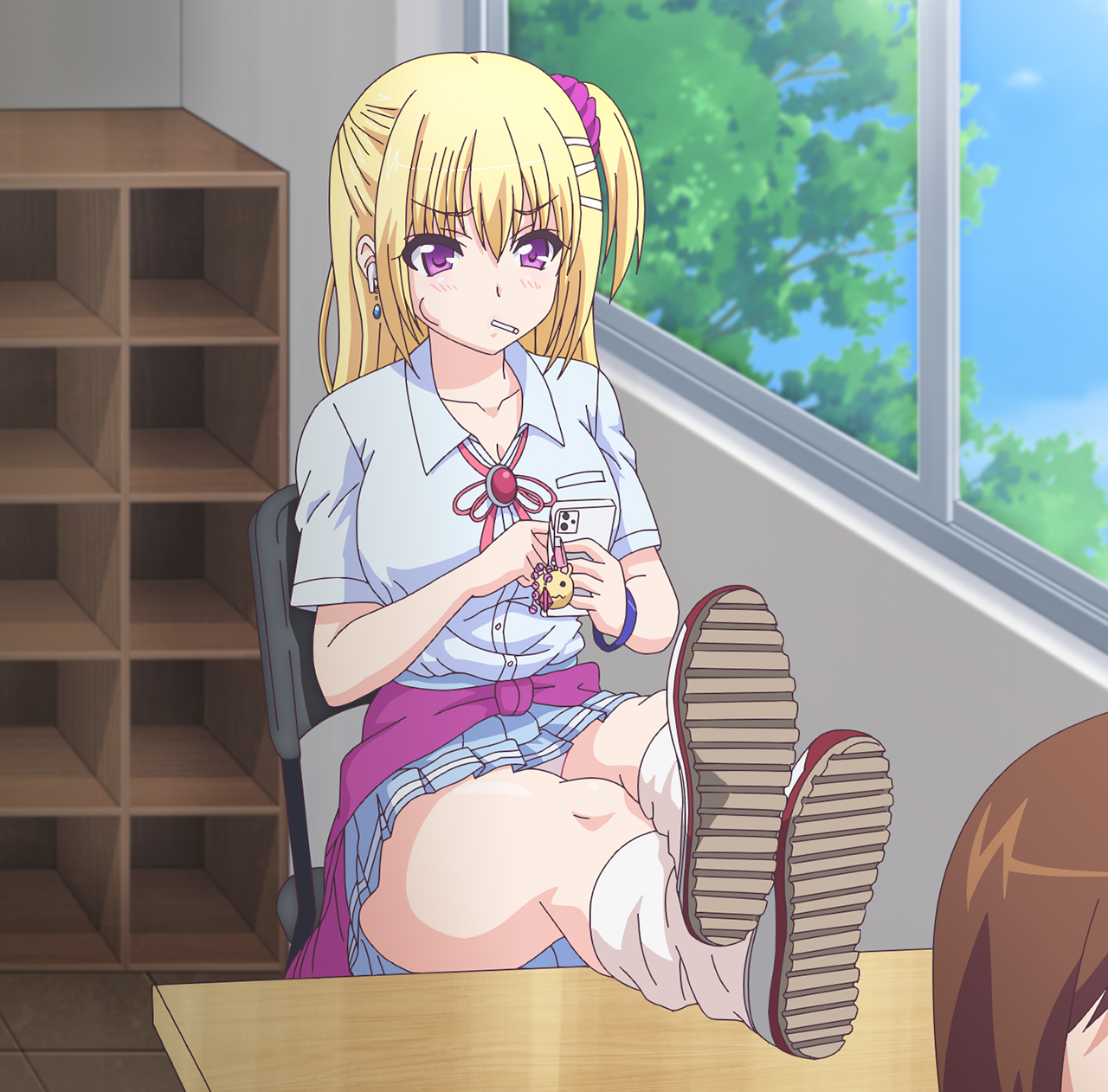 ▲栞菜にギャル化を提案した親友の芽衣。影で栞菜を「デビューちゃん」と呼んで笑っているようだ