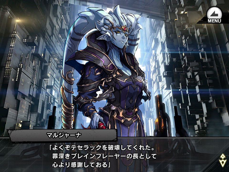 ▲賢明卿マルジャーナ。ブレインフレーヤーの元女王。側近を引き連れ、滅びゆく出身世界を見捨てて魔界に移住した。魔王が健在の時代に9貴族に入ったのか、後から入ったのかは不明。女王の座を継いだ妹のマウザとは敵対している。現状維持派で急進的な改革やもめ事を望まない。小太郎や大人ゆきかぜと知り合い