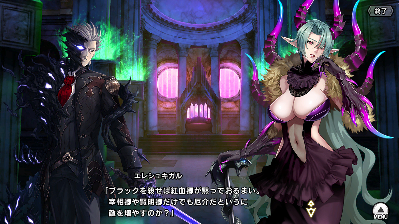▲魔界には魔王という地位がある。その地位は世襲制であり、王家が存在する(した?)というのが、メインクエスト・チャプター48"鬼神の対魔忍"で判明した新事実だ。この話、情報が多すぎて省いていたので、改めて説明しておきたい。画像は魔界の風景の例