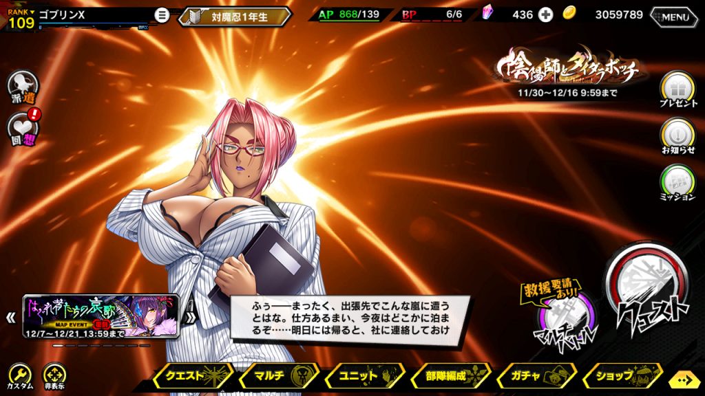 この記事はプレゼントコード付きで毎週更新する『対魔忍RPGX』のプレイレポートだ。今回は新イベントの開始直前ということで、書くこともないし(五車祭プチセレクションガチャの1日1回無料では何も出てないし)設定解説をしておきたい。