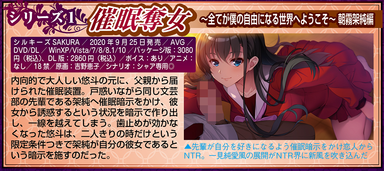 シルキーズSAKURAの最新作は催眠といえばこの人・吉野恵子氏原画の寝取り催眠モノ!! 『催眠奪女 〜全てが僕の自由になる世界へようこそ~ 朝霧架純編』