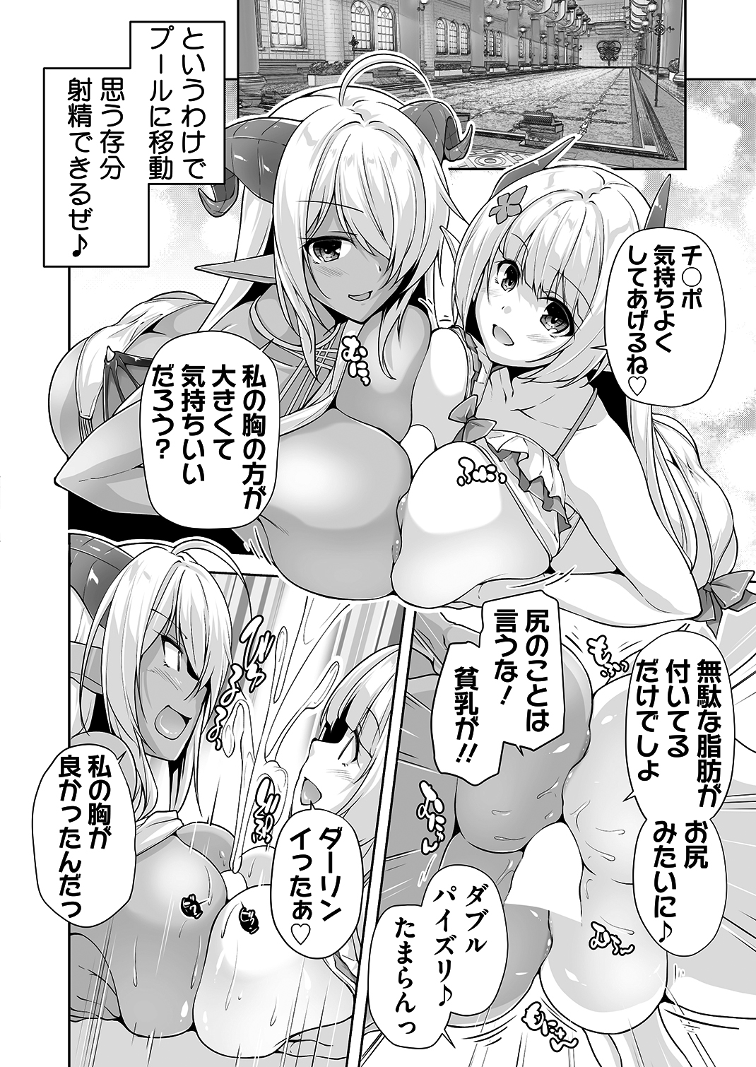▲可愛くて超巨乳のエルフ二人による孕ませ頂上決戦が実現!! コミカライズならではの特濃ハーレムエロスを堪能しよう♪