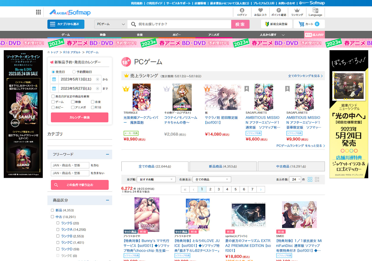 PCゲーム 新品商品・月間・予約商品(集計期間:4月19日~5月18日)