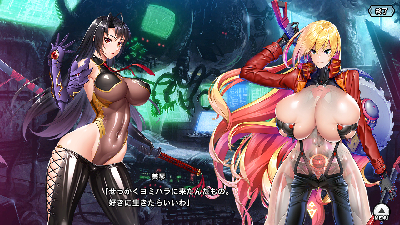 ▲ビビは対魔忍の子宮と脳を使って作られたサイボーグで、半透明の身体が光学兵器を無効化する。人間だった時の記憶を失っている彼女は、何かに急き立てられるかのようにヨミハラへと向かった。その理由は戦士としての本能か、サイボーグたちとの友情か、もしくは何かしら得体の知れない心の底から湧き出る感情なのか……