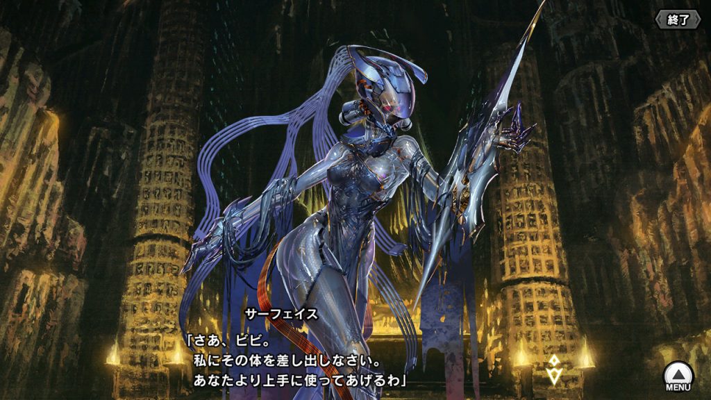 ▲助けてくれたのは、お久しぶりの桐生美琴。美琴から治療を受けるビビだったが、いてもたってもいられず、彼女を強く誘因する場所へ向かう。そこで待っていたのはフュルストの残したメッセージだった。しかし、フュルストは肝心の「ビビが何者か」という答えを与えてくれない