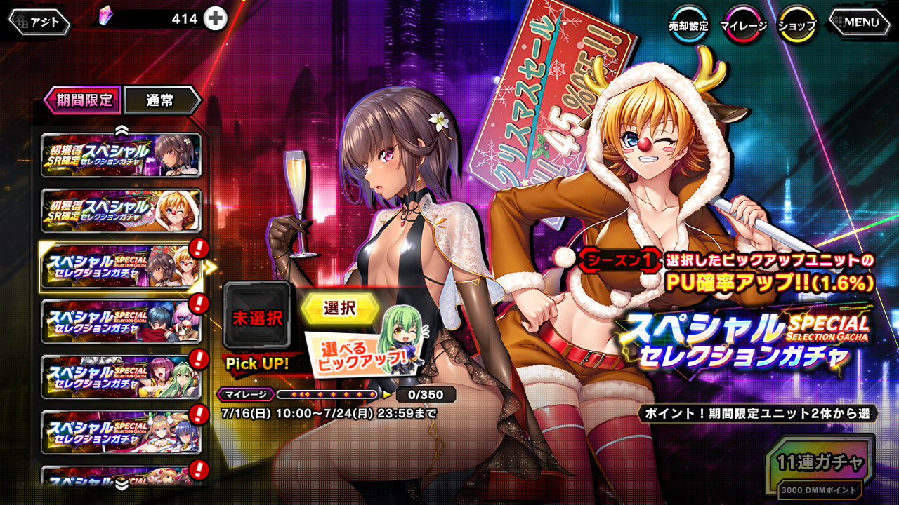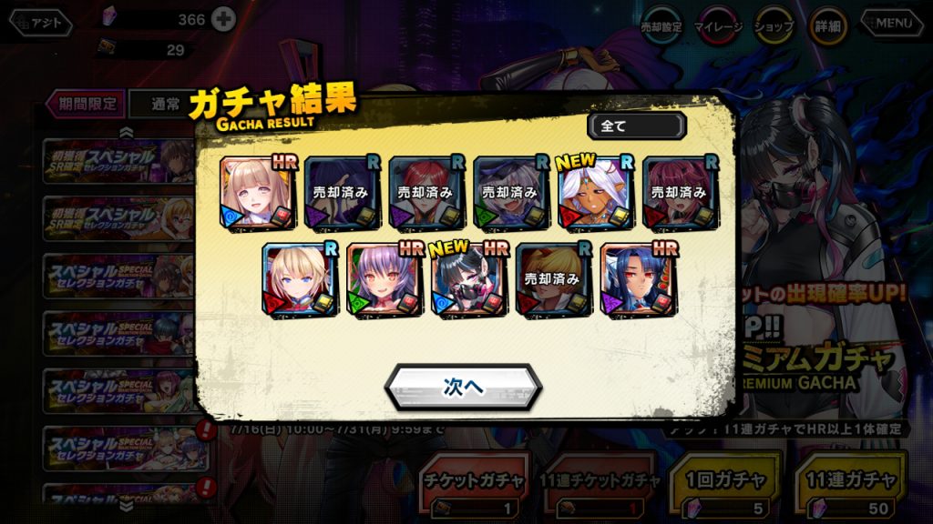 ▲あとは初獲得SR確定スペシャルセレクションガチャ、スペシャルセレクションガチャが開催中。スペシャルセレクションガチャはシーズン1~5まであって、ピックアップがわかれているのが親切。ゴブリンはなぜかすべて、片方持ってて片方持ってないピックアップになっているので、ハズレが怖くて回せない