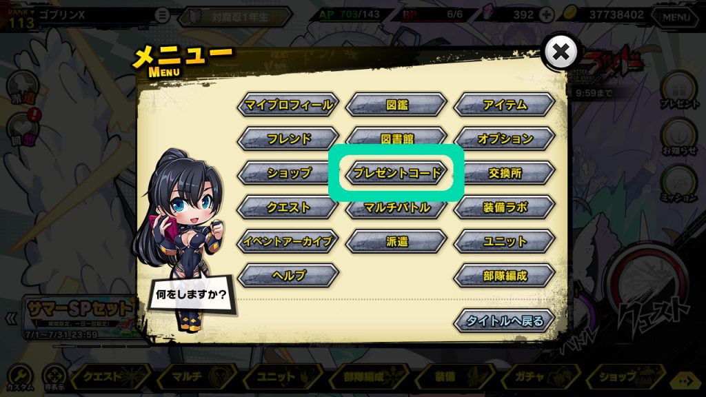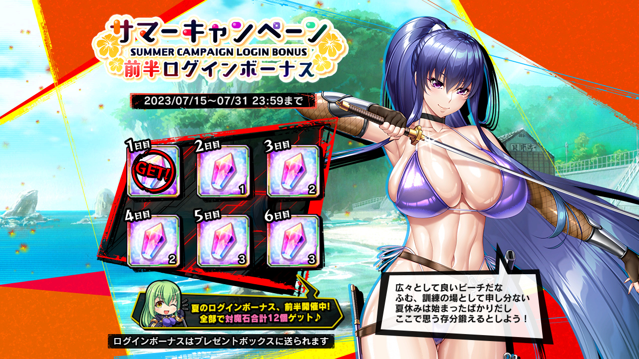 ▲サマーキャンペーン前半ログインボーナスも開催中、合計で対魔石を12個もくれる。ありがとう凜子