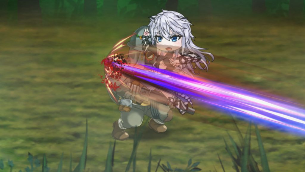 性能はスキル1が単体攻撃、スキル2が全体攻撃(味方全体のSPDが高いと威力アップ)+DEFダウン、奥義が単体4~8回攻撃(1回ごとにSPDダウン)。