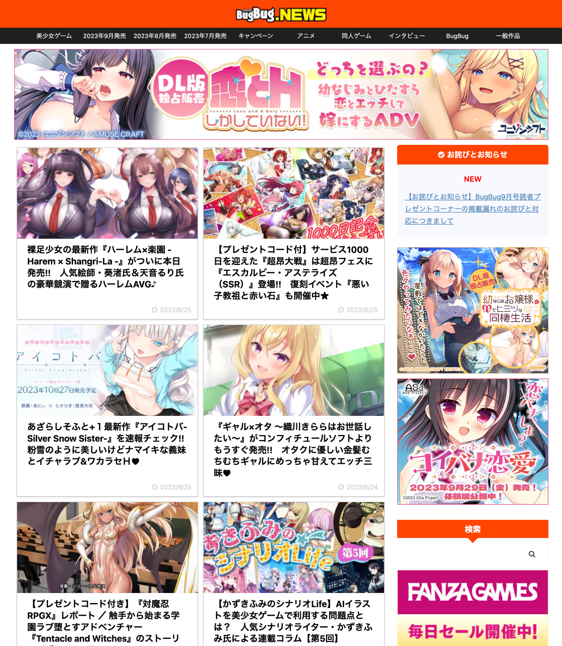 先週はアストロノーツ・シリウス新作の独占スクープに話題沸騰!! Hなおっぱいが目を引くエロエロ作品も人気♥ BugBug.NEWS・8/12〜8/18の人気記事ランキング★