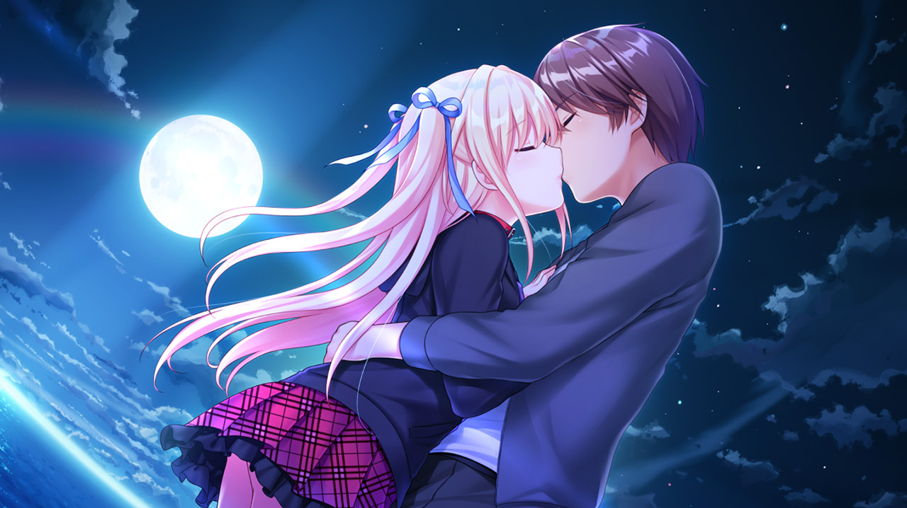 ▲スピンオフ『月の彼方で逢いましょう SweetSummerRainbow』もヒット中の人気ヒロイン・雨音とロマンチックな雰囲気でキス♥ 彼女の活躍はこちらの体験版レビュー記事で!!