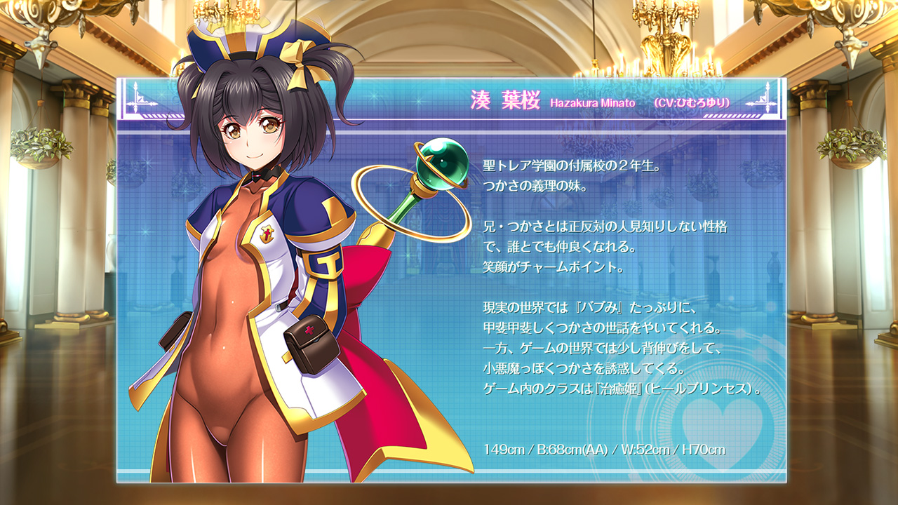 まずは現実世界でのストーリーを紹介しましょう。主人公・つかさは引っ込み思案で人見知り。勇気を出してクラスメイトと話そうとしても、言葉が上手く出ずクラスに馴染めない様子です。そんな彼に「VRゲームで他プレイヤーと交流しコミュ力を身に着けては」と提案したのが、主人公の従姉妹・まひろ。というワケで主人公はゲーム世界へ旅立つワケです。こうした経緯やヒロインとの出会いが、体験版の現実パートでは描かれています。