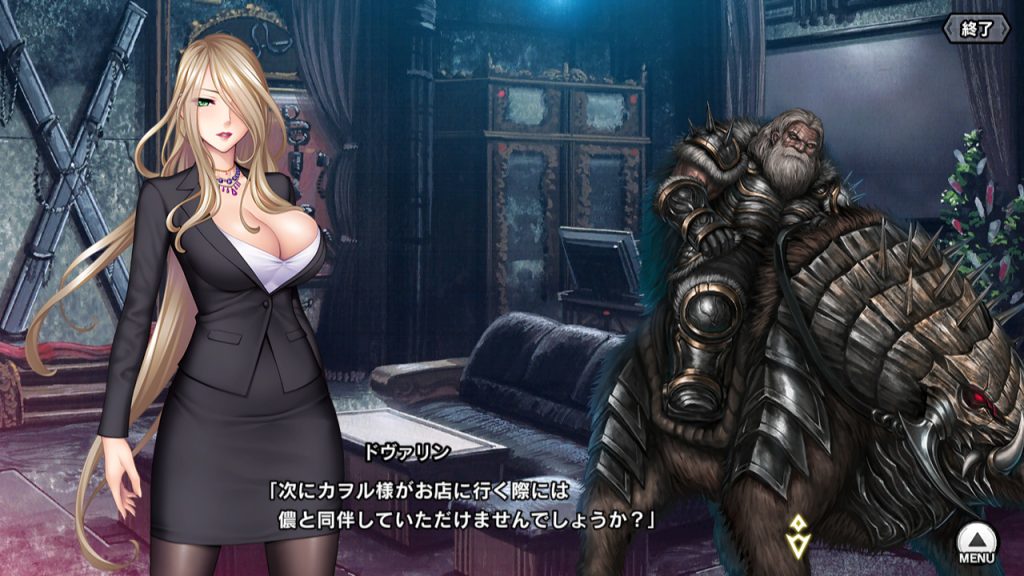 ▲クロエのアドバイスでカヲルの店(ヨミハラの高級クラブ・黒薔薇)に同伴することにしたドヴァリンは、あっさりと監獄に復帰する。「カヲルは強気な男に弱い」という適当情報を聞いてやる気を出しているが、多分、無理だろう