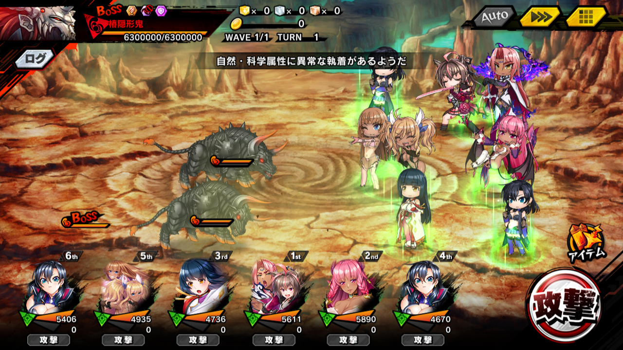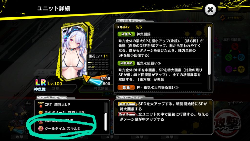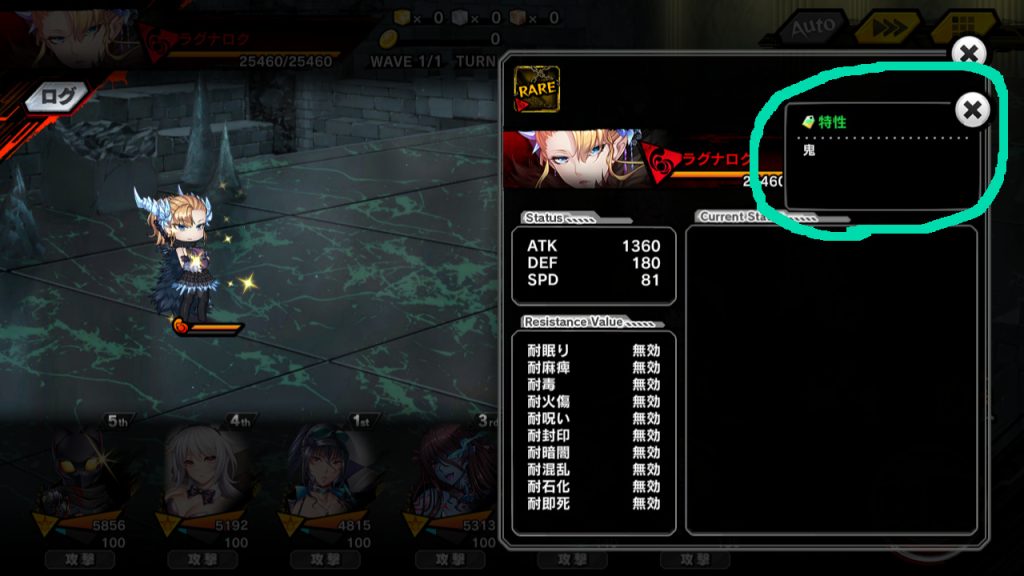▲今回のイベントから、新たな要素・特性が追加された。特性はそれ自体に効果はないが、スキルの条件として機能するようだ。例えばSR魅神千都は「対象が特性・鬼のときに威力上昇するスキル」を持つ。敵だけでなく、既存の味方ユニットにも特性が追加されている。SRラグナロクやSRユフィ&ソフィなんかが特性・鬼。順次、淫魔とか獣人とか対魔忍とか追加されていくんじゃないだろうか?