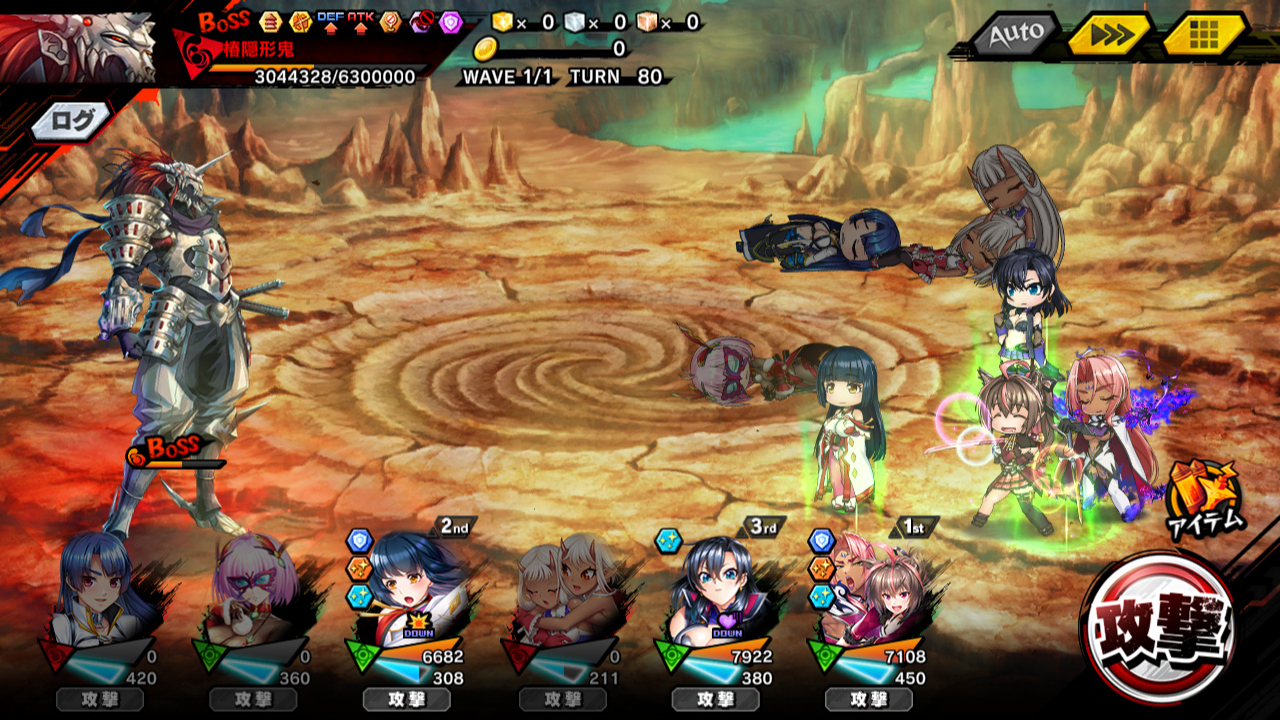 ▲バッキバキの超人・精神耐久部隊を組み、200ターンかけて鬼謀の反射で殺す作戦を企てたのだが、結局レイジモードに入った隠形鬼にサクサク殺された……HP1万+DEFアップ+シールド+ダメージカット+有利属性なのに。どうやら低頻度で、超威力の複数体攻撃を放って来るっぽい。多分、UR装備で固めた攻防バランスのいい精神部隊を組んで、30~40ターン程度で倒す(超威力攻撃を1回に抑えて賢者の石で立て直す)、みたいな感じなんだろうなぁ……Lv.75レイドボスが面倒すぎてUR装備集めサボってたツケがついに回ってきたか
