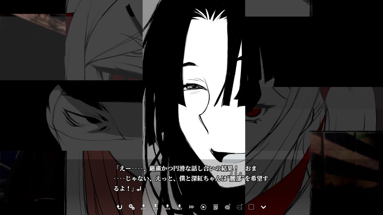 過激な暴力描写と凄惨な表現&CGが目を引く本作ですが、演出面でもカットインを多用した会話に迫力があって良かったですね。体験版はちょっと短めなのでストーリー的にはわからない部分が多いのですが、それでもなお妙に物語に引き込まれてしまいました。ですので人を選ぶ作品ではありますが、間違いなく他に類を見ない怪作と言えましょう。普通の萌えや燃えの美少女ゲームとは違ったものをプレイしたい、そんな人に最適な作品だと思います。