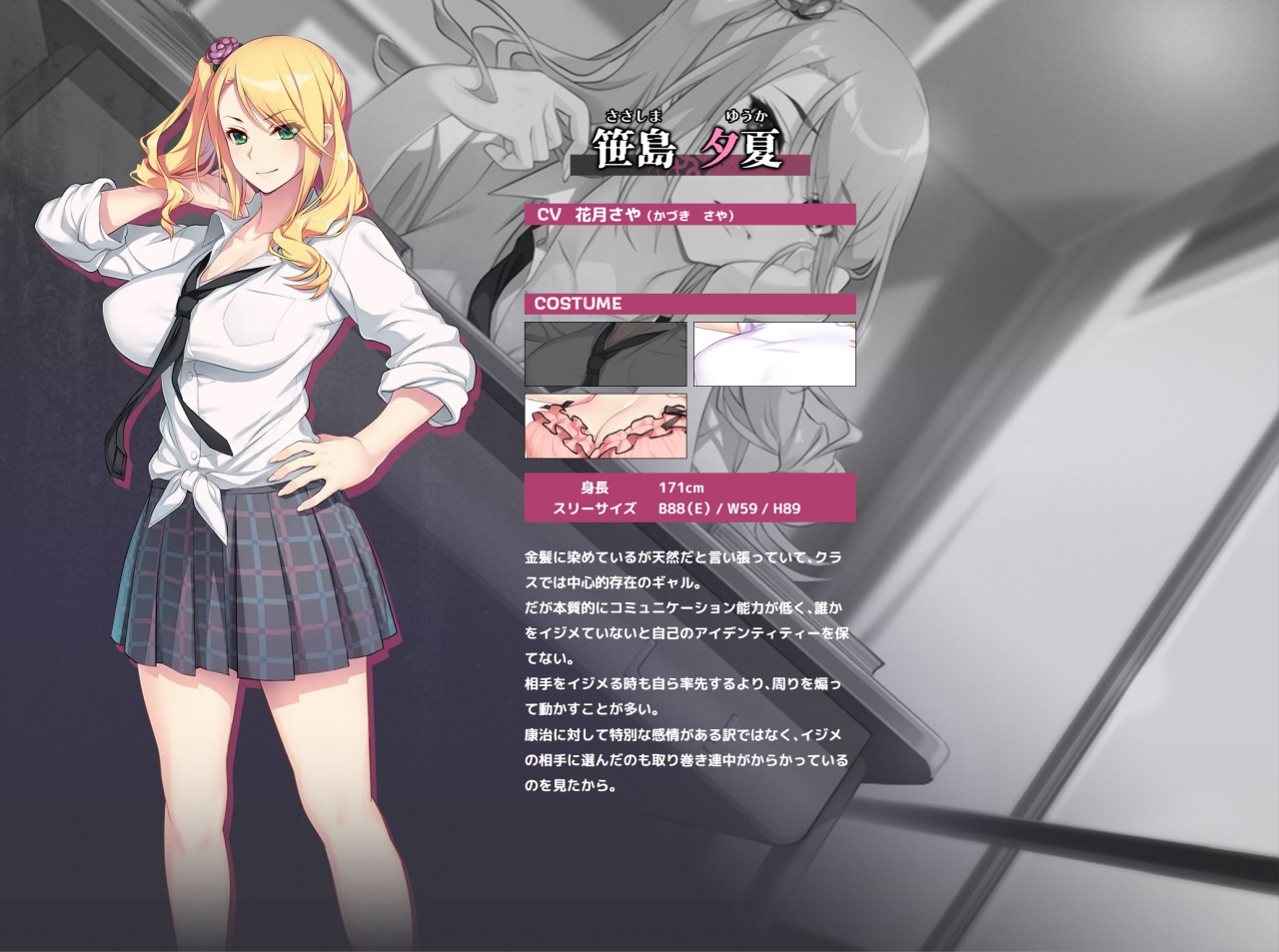 ▲なんか適当に主人公をいじめ始めたギャルの夕夏チャン。性悪ながらナイスすぎるボディなので隅から隅まで触手で遊んじゃおう♥