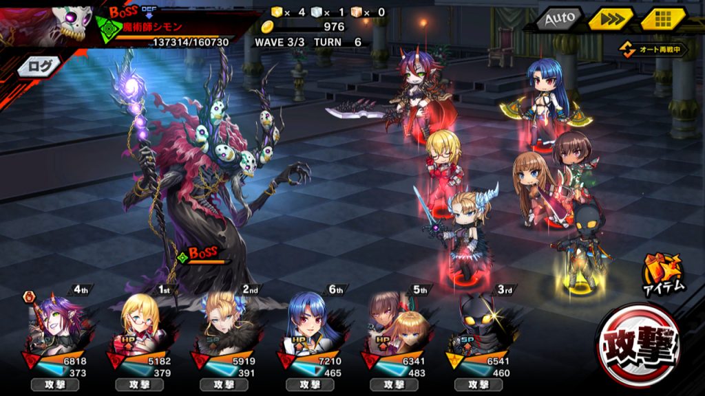 ▲ボスは精神属性の魔術師シモン。組んであった超人部隊で気軽に戦っているが、不利属性なはずなのに問題なく死んでいく。周回しやすくてありがたい