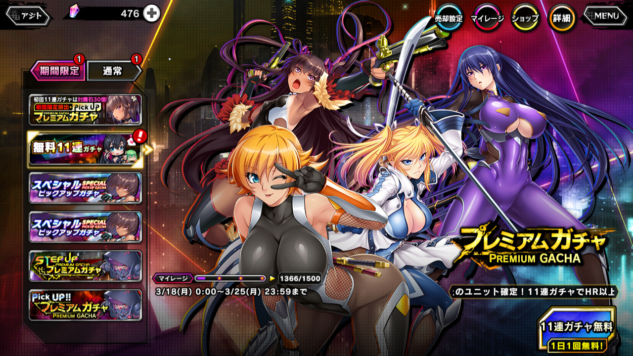 ▲3月18日~3月25日23:59までは毎日11連ガチャが無料で1回回せるので、忘れずに。ラインナップは恒常のプレミアムガチャと同じで、恒常にまだ入っていない覚醒ツバキ、マルーデル、オルトールは当然含まれない