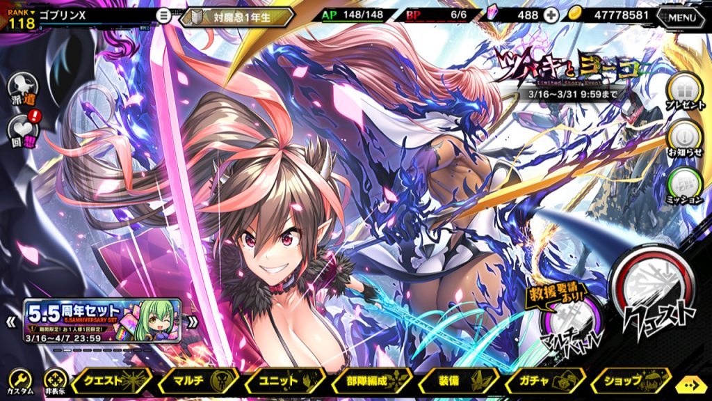 この記事はプレゼントコード付きで毎週更新する『対魔忍RPGX』のプレイレポートだ。今回は3月16日~3月31日9:59まで開催中のストーリーイベント"ツバキとヨーコ"についてレポートしていく。
