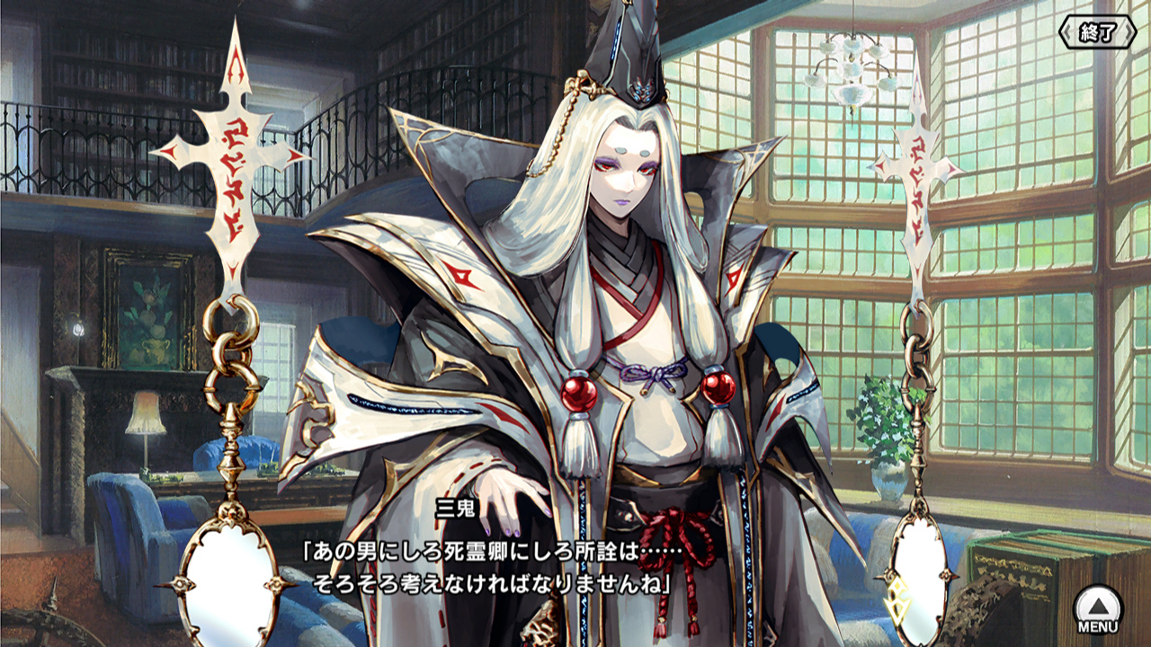 ▲最後は特務機関Gに協力していたのが五行学園の校長であり、陰陽博士の吉備乃三鬼だと判明する。死霊卿とも手を組んでいるようだが、どうも彼女……彼? には独自の目的がありそうだ