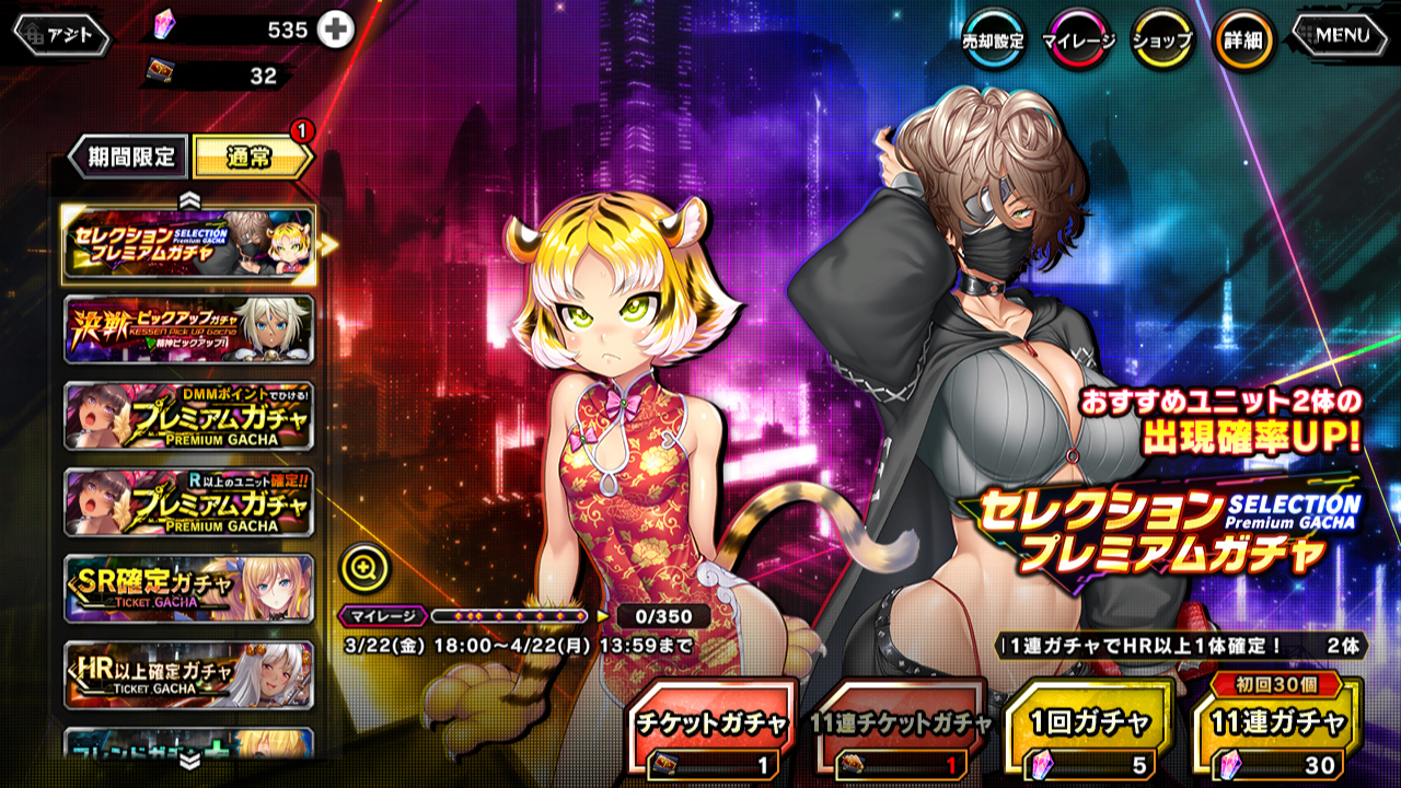 ▲五車祭に隠れてしまっているが、一応、セレクションプレミアムガチャもやっている。SR【旗袍】トラジロー、SR【ロスタイムユース】天津杏里がピンポイントで欲しい人はチャンス
