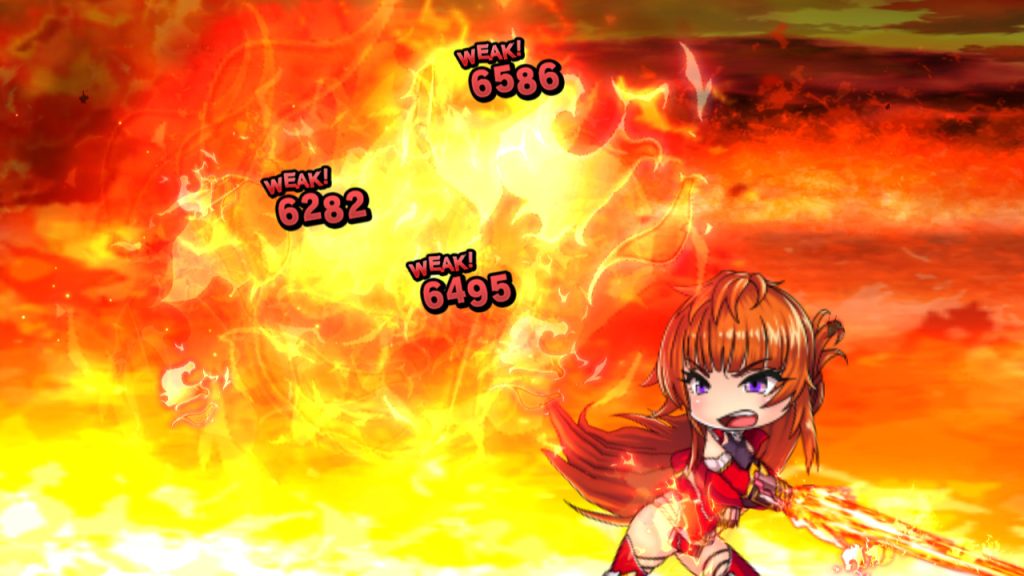 ▲舞華の奥義、火神・久那土の演出。画面奥から手前に向けて、炎の剣を振り抜くモーションが格好いい。短い中に、SDの動きの進化が詰まっている