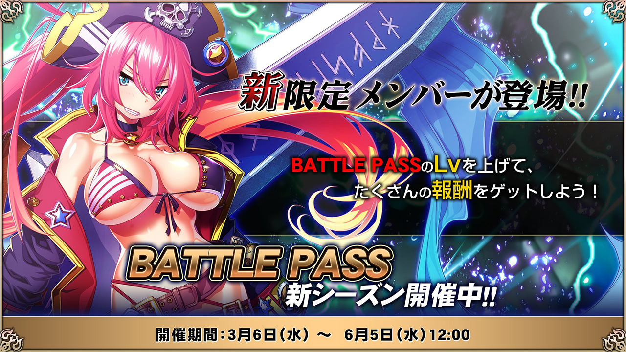 ▲「BATTLE PASS」の新シーズンが開催。6/5まで開催中で『☆5【うちぅ勇者海賊】ルルン』も登場するぞ