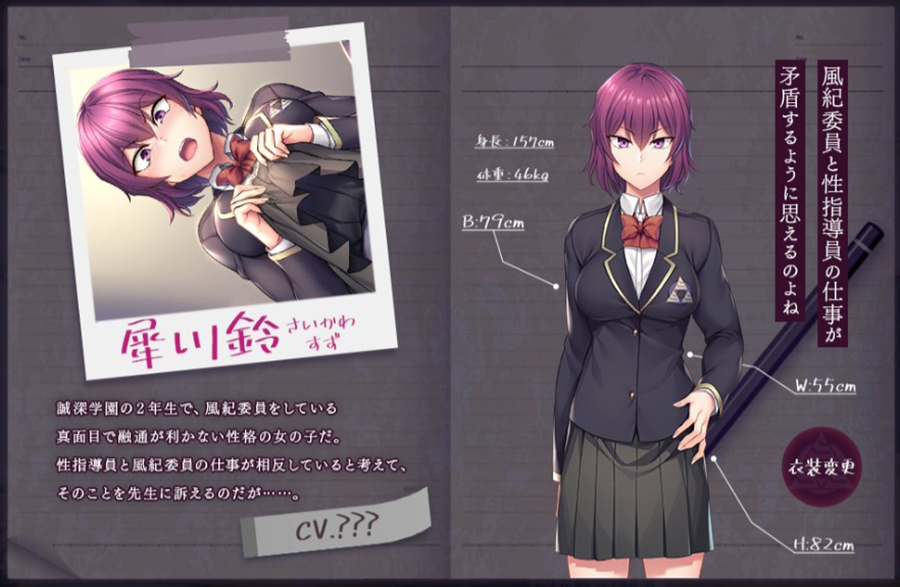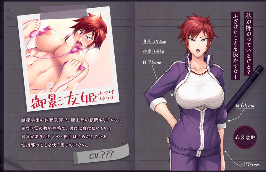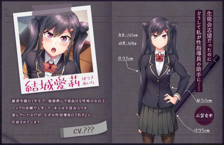 ▲本人は生徒会入りを望んでいたが、主人公に目をつけられ性指導員の助手にされてしまう