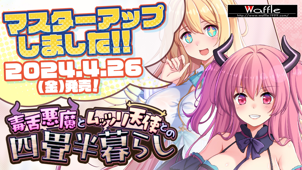 原画:こ~ちゃ氏×シナリオ:御導はるか氏のコンビで贈るカワイイ天使と悪魔に搾精されまくるWaffle最新作『毒舌悪魔とムッツリ天使との四畳半暮らし』を速報チェック♥