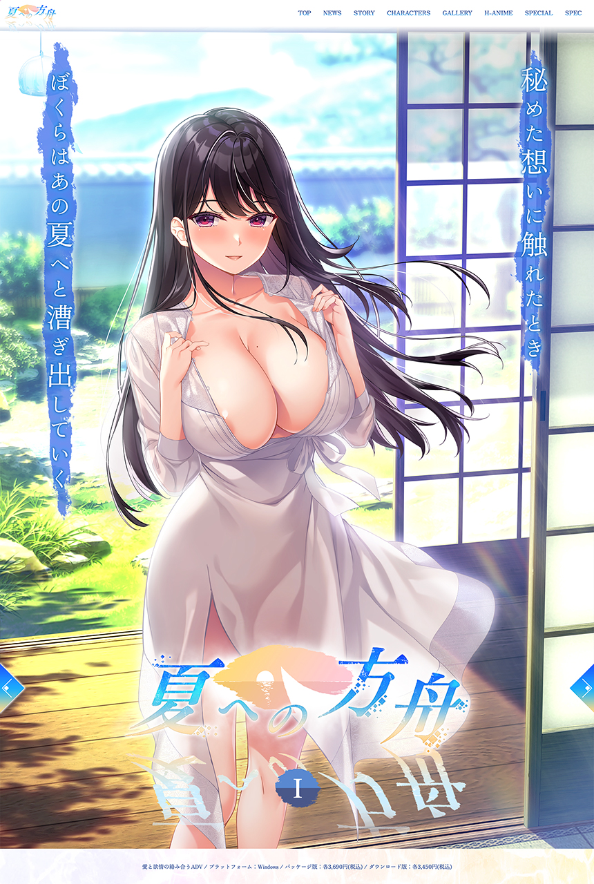 美麗なCGと実用性の高いシチュエーション、そしてヒロイン毎に個性的なストーリーが描かれたArgonautsの三部作『癒してあげたい』シリーズに続く、新たな三部作がついに発表となった。それが今回紹介する『夏への方舟』シリーズだ。その第一弾は従姉のお姉さんとの愛と欲情を描いた物語となっており、望まない結婚話が持ち上がった従姉と、彼女が愛する主人公とのストーリーが展開していく。もちろん今作もやまかぜ嵐氏が原画を、シナリオを灰瞑(かいつむり)氏が担当。さらにHシーンの一部にはアニメーションも導入され、より艶やかな作品となっているのだ。まずは発売が待ち遠しい期待作の公式HPを隅々までチェックしていこう。