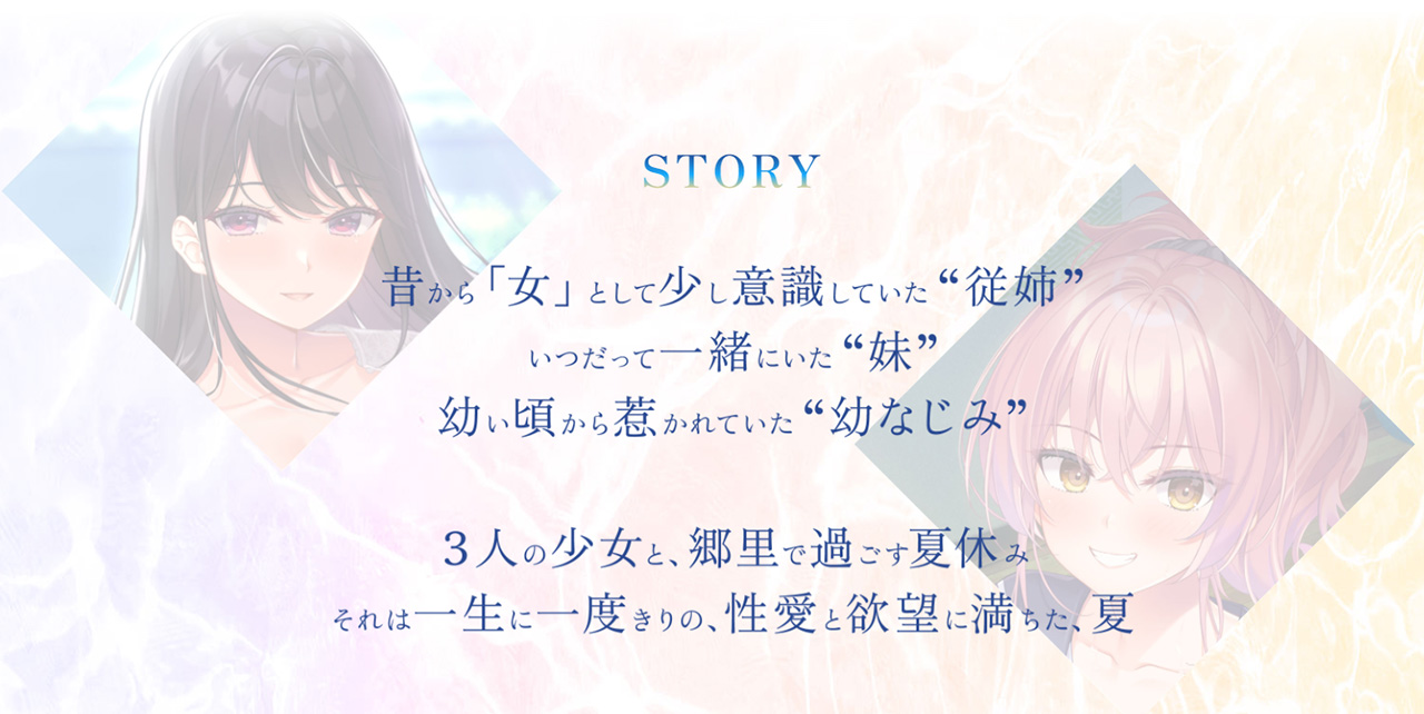 先にも記載した通り、今作も三部作となっており一作毎にヒロインが変わるようになっている。そして公式HPではすでに二作目、三作目のヒロインも紹介されているのだ。ここではその続編のヒロインたちをまとめて紹介。二作目は主人公の妹である美玖。彼女は兄と従姉の情事を目撃して、自分の本当に気持ちに気付く模様!? そして三作目のヒロインは主人公の幼なじみ。元々彼女と主人公はお互い惹かれあっていたが、なかなかその先へと進まなかったのだが…。どの子もとても魅力的なので、ぜひ全作購入して楽しんじゃおう。