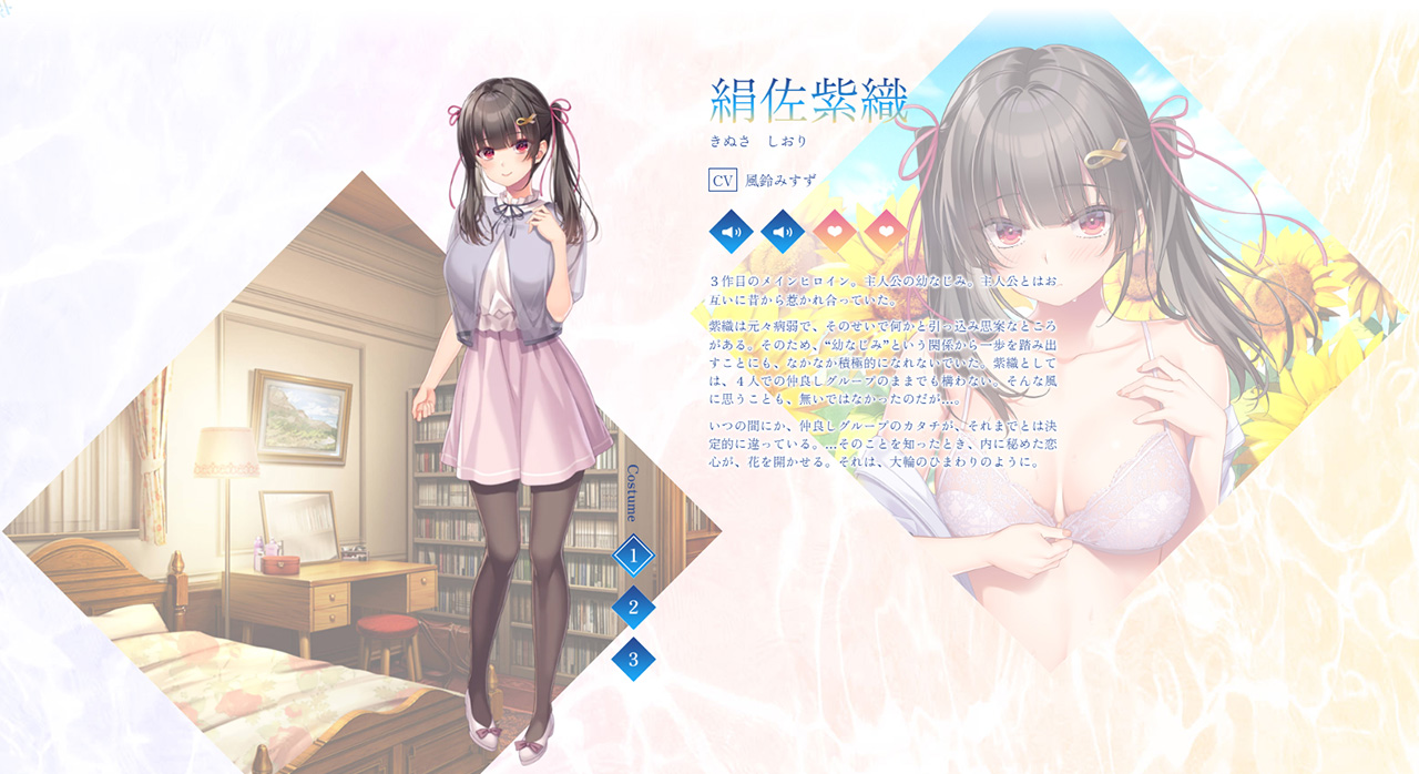 ▲三作目のヒロインの紫織。病弱で引っ込み思案な彼女との仲はなかなか進展しなかったようだが…