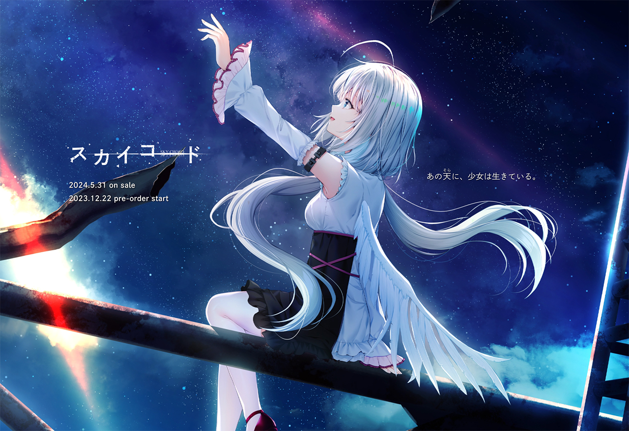 コンシューマにも移植された前作『2045、月より。』から約1年半、ファン待望の最新作『スカイコード』が登場となったMELLOW。今作は不登校な主人公と片翼の天使の二人をメインに、様々な登場人物たちが複雑に絡み合う物語となっている。物語の舞台となる都内には廃墟群があったり、羽を持つ人は特別な力が使えたりと、不思議な物語となっているのだ。今回はその気になるMELLOWの新作の公式HPをチェックしていくぞ。