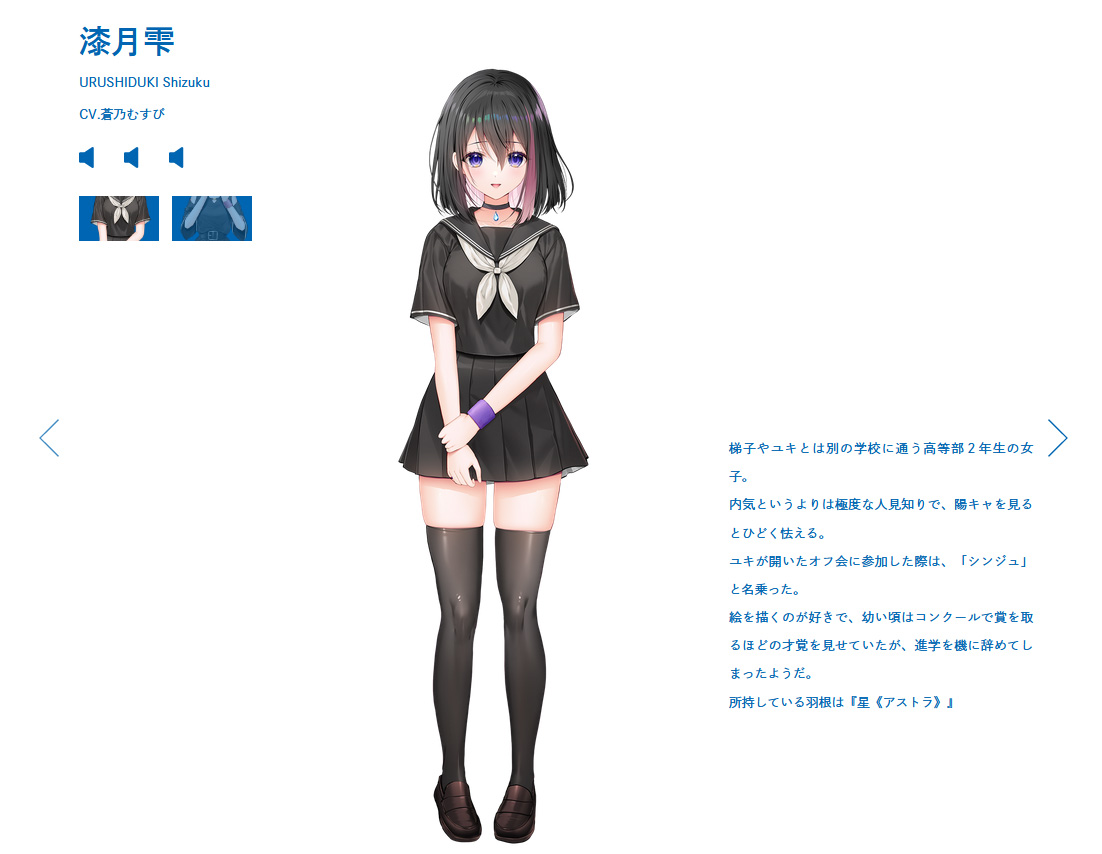 ▲内気で人見知りという彼女。羽根『星<アストラ>』を所持している