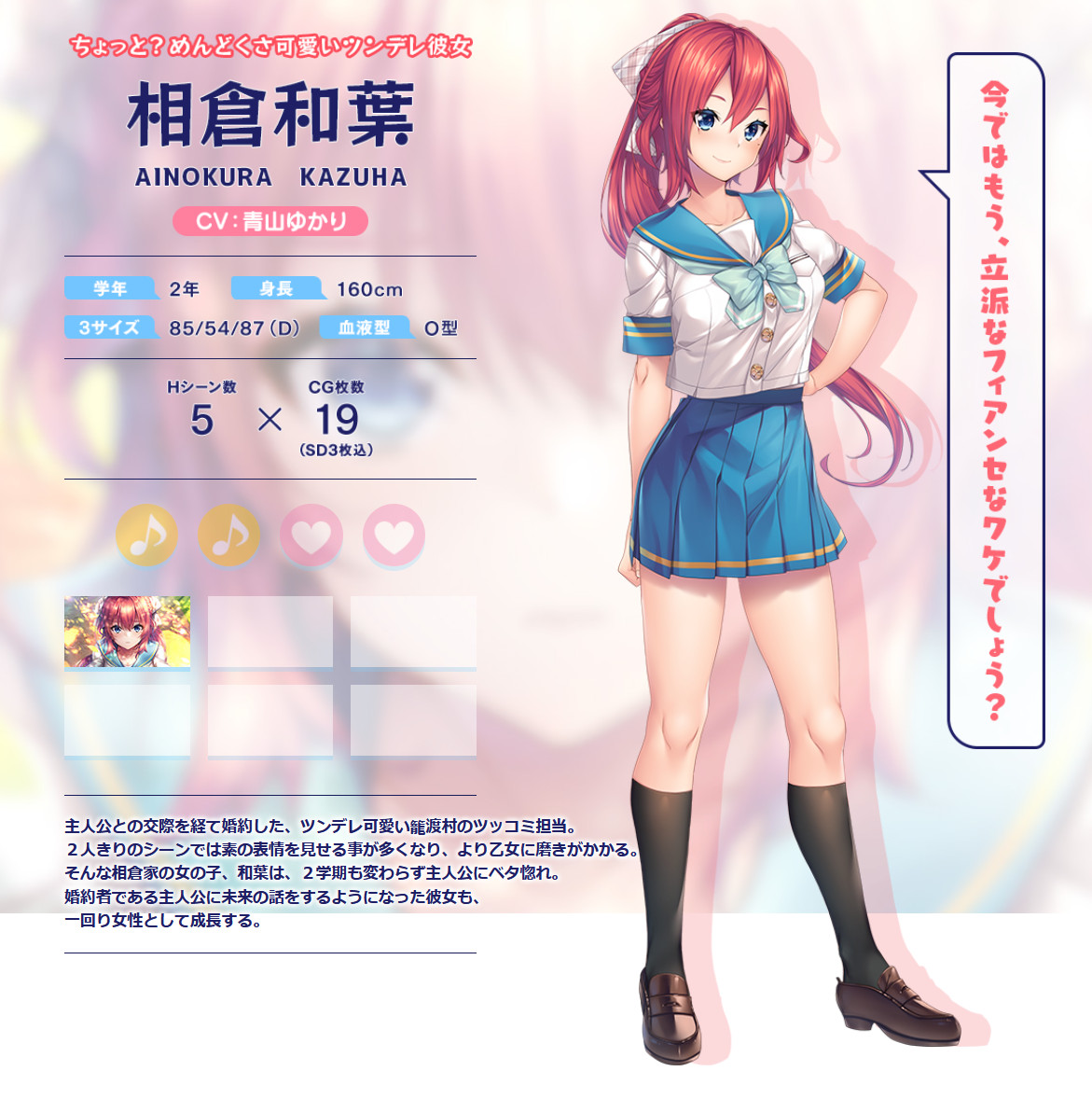 ▲主人公が居候する親戚の家の娘。知り合った直後は微妙な距離感だったが、ツンデレなこともありゆっくりと愛を育んで今では婚約者に♪