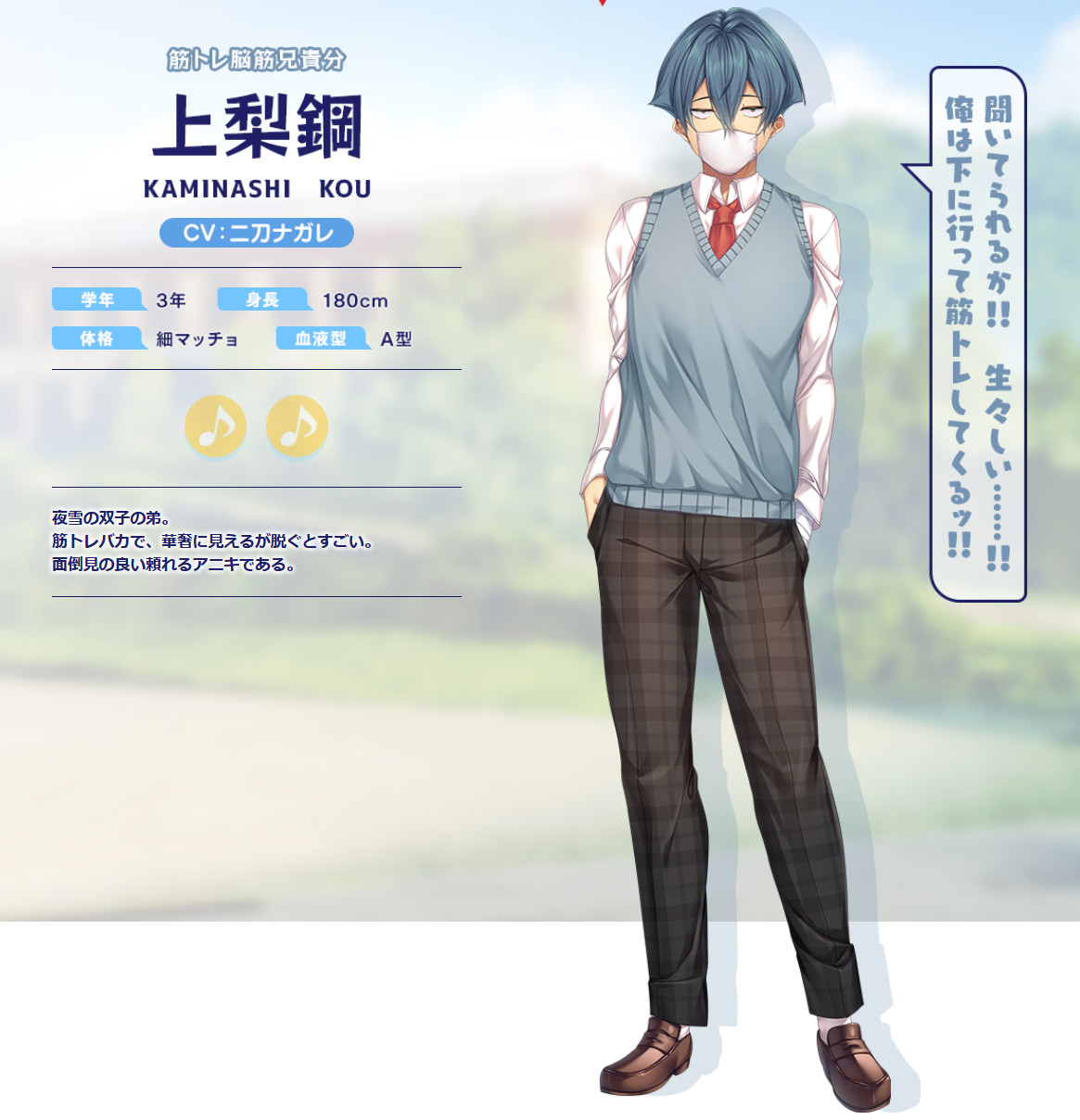 ▲夜雪の双子の弟で筋トレバカ。こう見えて意外と面倒見が良い先輩なので、今作でも頼りになる…かも!?