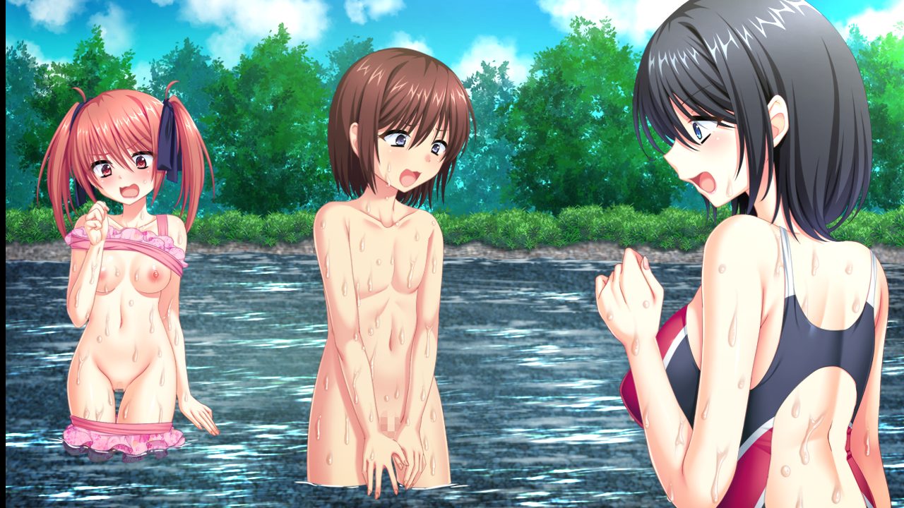 ▲川辺のキャンプなので一同は水着に着替えて生活することに。当然お着替えシーンも♪