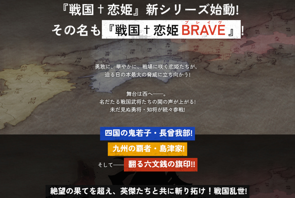 第一弾となる『戦国†恋姫BRAVE壱 ~四国の鬼若子、長曾我部編~』では、四国の鬼若子・長曾我部元親率いる長曾我部家を中心としたストーリーが展開。さらに自らを第六天魔王と名乗る謎の存在、波旬信長が出現し、日の本に再び大きな危機が迫る。