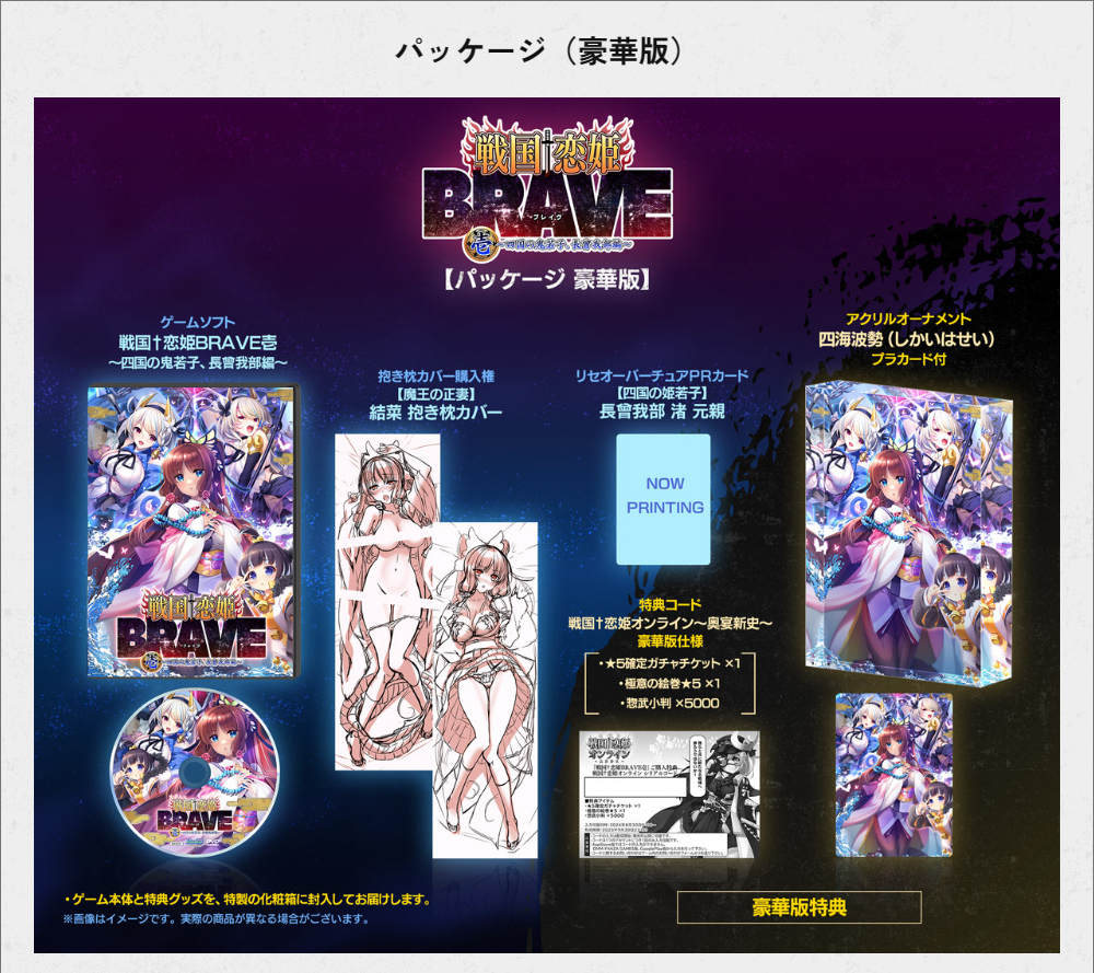 抱き枕カバー購入権やアクリルオーナメントが付属したパッケージ豪華版の他、新しく『戦国†恋姫』を始める人向けに、シリーズの起点『戦国†恋姫X』のリパッケージ版や、前作『戦国†恋姫EX』の3本セット版も発売中なので、それ等も要チェックだ!!