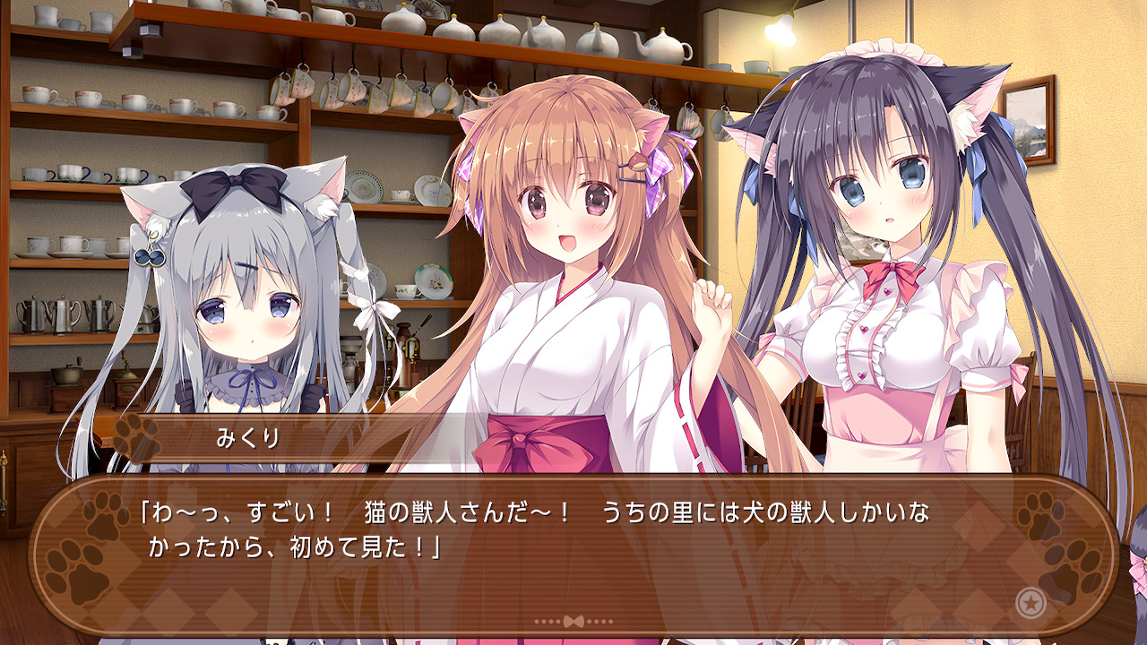 ケモノ耳をもった可愛い女の子たちと一緒に喫茶店で働く毎日は甘い幸せがいっぱい♪ ニャンコやワンコにするみたいにいっぱい可愛がってあげたくなっちゃいそう♥